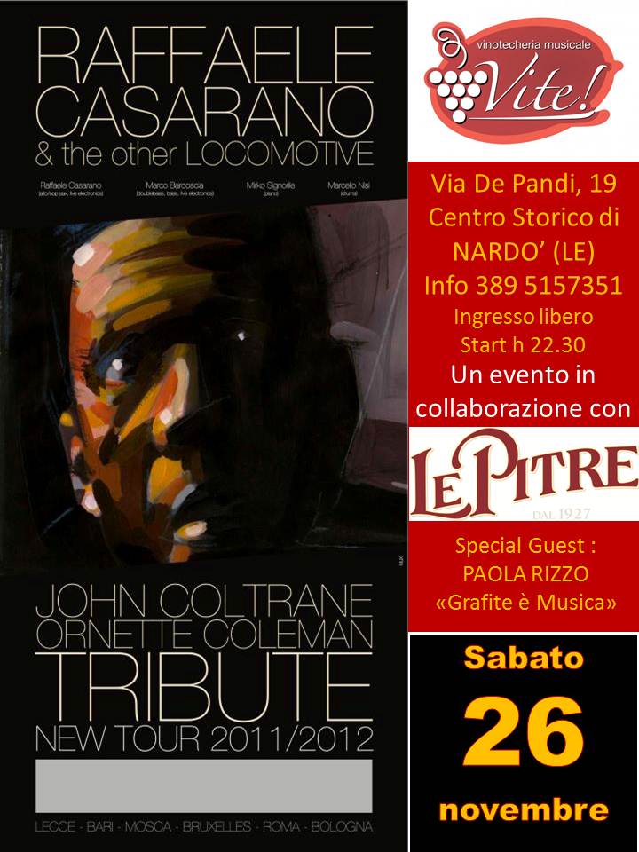 Sabato 26 Novembre alle 22.30 e Chrome Hearts Sale domenica 27 alle 1.30. Raffaele Casarano & The Other Locomotive Tour 2011-2012 Special guest : Paola Rizzo “Grafite e’ Musica’ in collaborazione con – ‘Le Pitre’ – Cantine Villa Chrome Hearts Mottura Vite! Vinotecheria Musicale – Centro Storico di Nardò (LE) Via De Pandi, 19 CENTRO …
