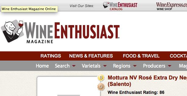 Wine Enthusiast degusta il Negroamaro Rosè Spumante Mottura