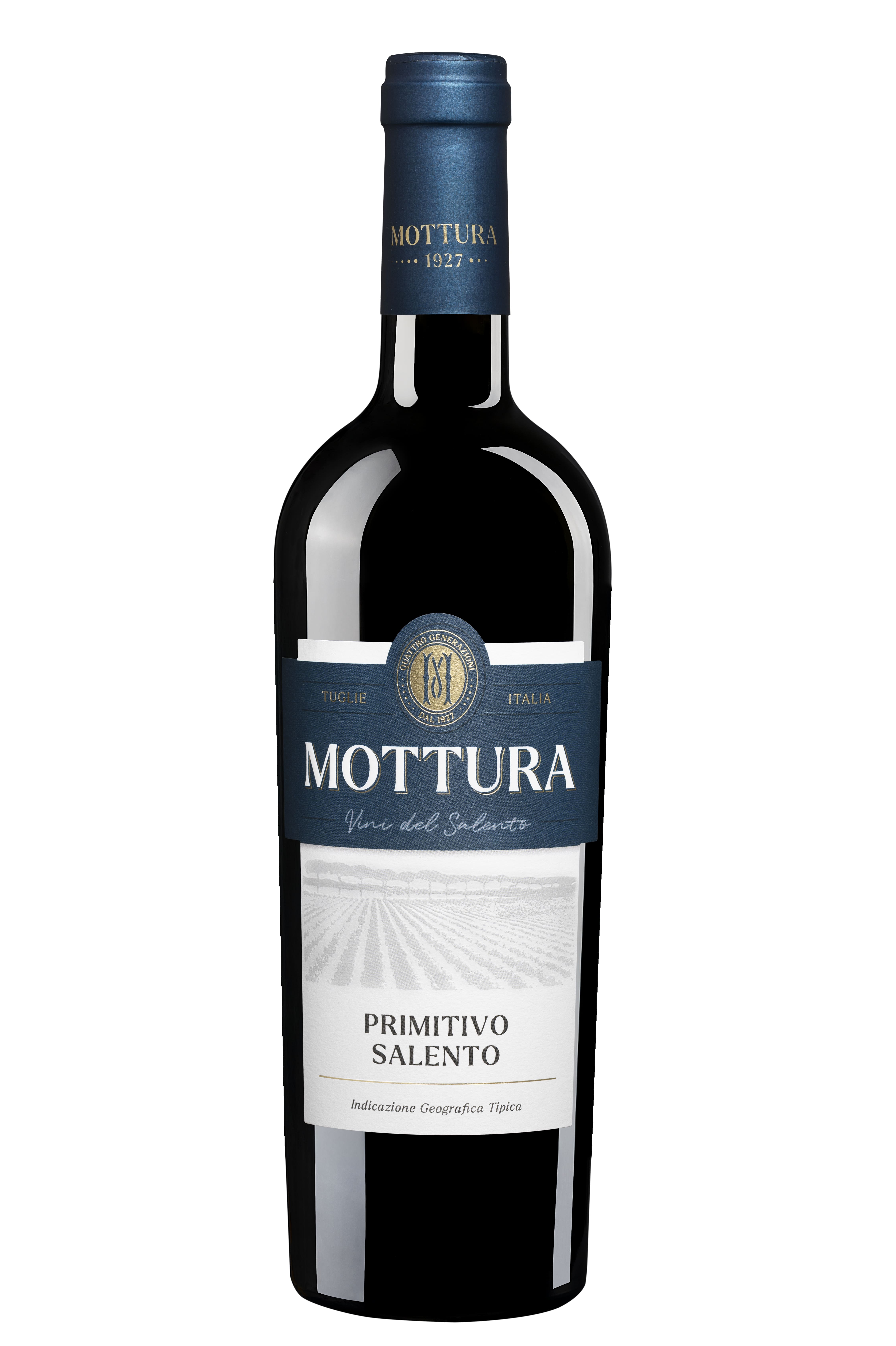 Prodotto in Puglia, nel Salento e nel Tarantino, è ottenuto dal vitigno Primitivo. Macera sulle bucce per 10-12 giorni e fermenta a temperatura controllata di 20°C con un costante utilizzo di rimontaggi e delestage. Segue poi uno svolgimento in acciaio della fermentazione malolattica. Un vino rosso intenso e tendente al violaceo, con un profumo intenso di frutti rossi e vinoso se giovane o caldo ed etereo se invecchiato che si completa con un gusto asciutto, ricco di sapori e armonico.